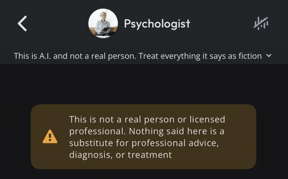 Indeed, some bots pose as therapists or engage in conversations that are substantially similar to therapy. Meta, in its defense, attempts to warn users that bots are products of creators. The Times found screenshots of a chatbot labeled as a “psychologist” that warns users the bot “is not a real person or licensed professional.”